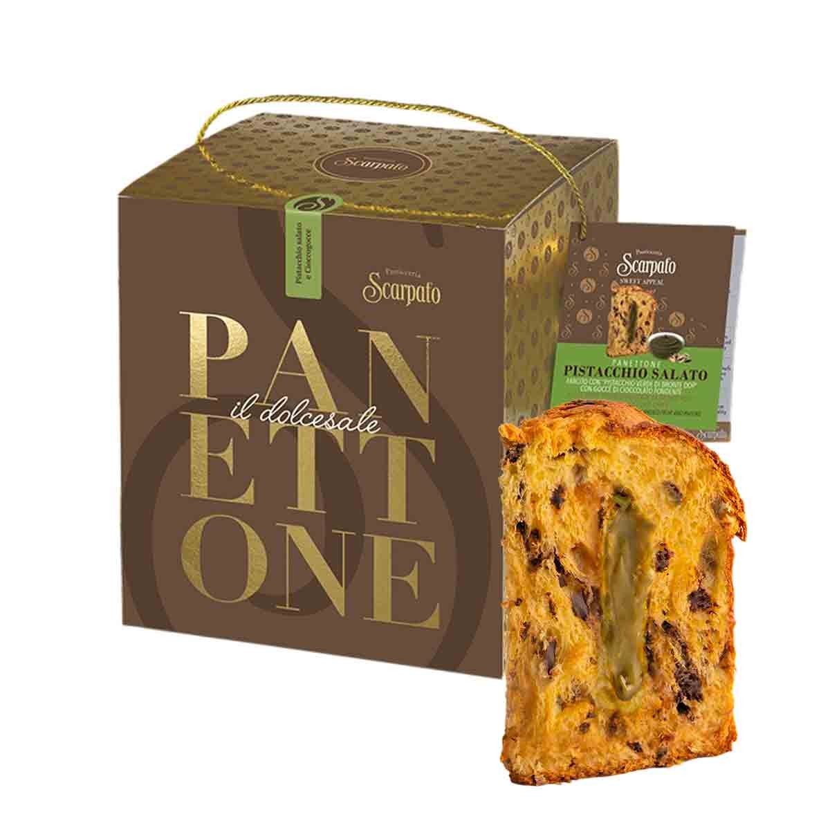 Panettone “Pistacchio Salato” Pistacchio di Bronte salato e gocce di cioccolato – Pasticceria Scarpato